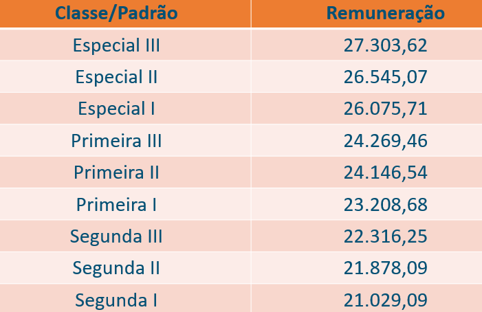 Após 3 anos na carreia, o Analista recebe um vencimento de R$ 12.399,56, um bônus de eficiência de R$ 1.800,00, auxílio alimentação de R$ 458,00 e auxílio saúde de R$ 130,00 para si e para cada dependente. O ganho real será de R$ 14.787,56, O valor pode ser ainda de R$ 16.607,56 com o valor do adicional de fronteira.