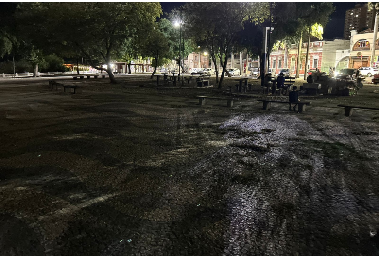 Estávamos na Praça Generoso Ponce, no coração da cidade, em plena Avenida General Rondon. Um cartão-postal… de outro tempo. Porque o que vimos foi só sombra. Todos os postes da praça estavam apagados. A única iluminação vinha da rua, como se dissesse: “olhem pra cá, mas só da calçada pra fora”.