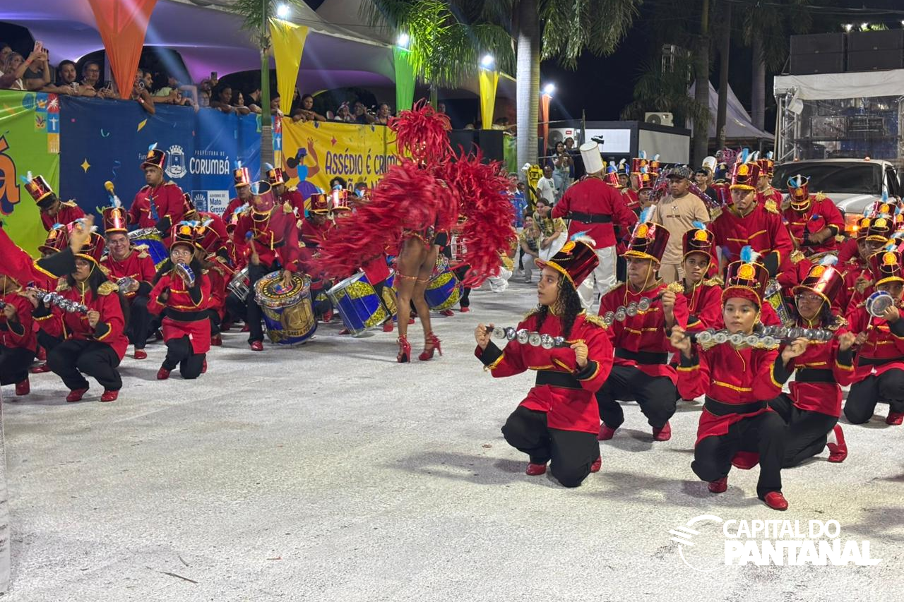 Bateria empolgou o público com ritmo preciso e variações que marcaram o desfile. Foto: Capital do PantanalApesar da inversão de uma ala, que gerou breve desorganização na sequência narrativa, a evolução se manteve estável ao longo do percurso. O conjunto plástico bem elaborado e a vibração dos componentes resultaram em um desfile de grande apelo popular e potencial competitivo, recolocando A Pesada entre as protagonistas do Carnaval de Corumbá.