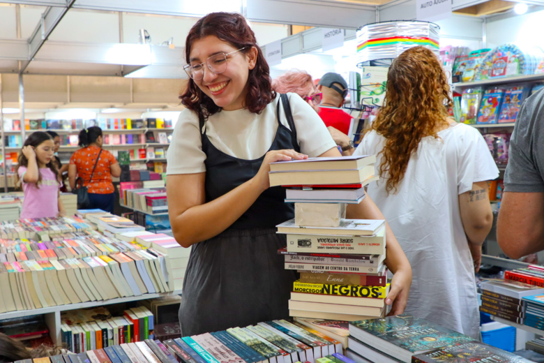Estudantes de escolas credenciadas receberam um ticket de R$ 50 para comprar livros estudantes. Foto: Rodrigo MedeirosLivro é o personagem principal da ‘Bienal Pantanal’