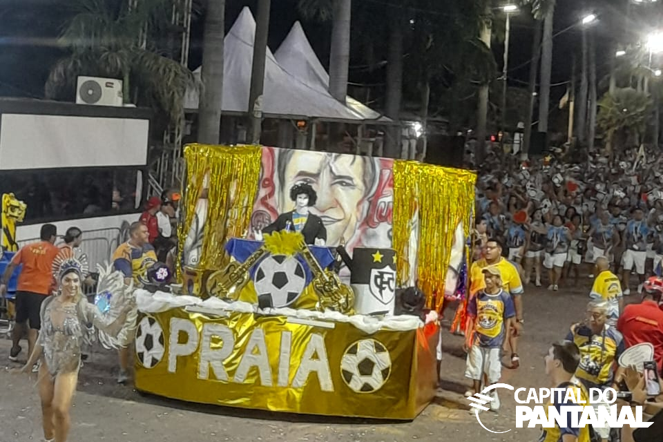 Praia Bola e Cerveja emocionou o público com homenagem ao comunicador Jonas de Lima. Foto: Capital do PantanalCom evolução firme e grande participação dos componentes, o desfile foi marcado por forte interação entre bateria, intérpretes e alas, criando um ambiente de celebração coletiva. O Praia Bola e Cerveja mostrou organização, carisma e muita energia, consolidando sua apresentação como um dos momentos mais emocionantes da noite.
