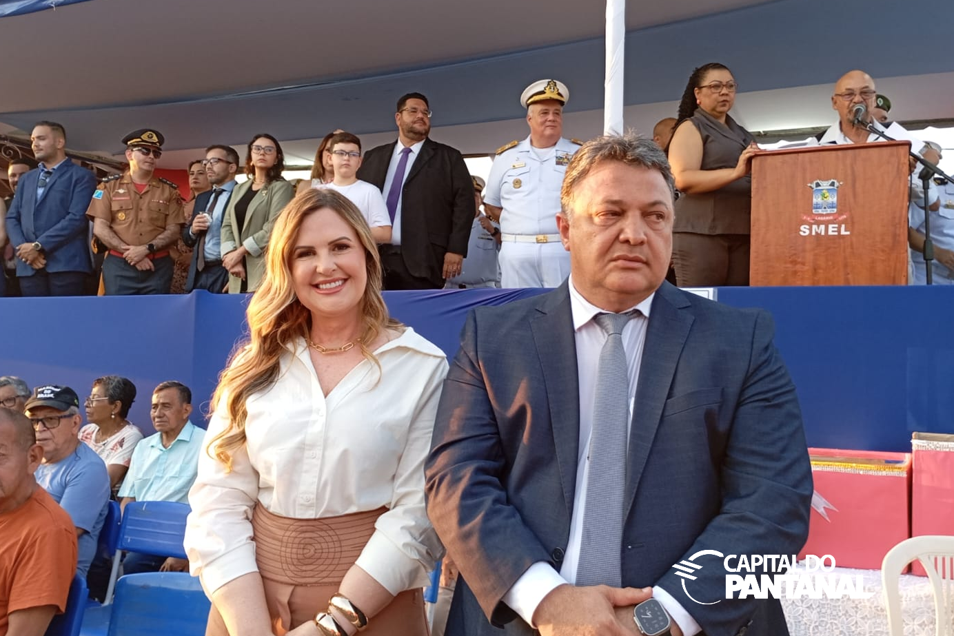 Munir e Roberta destacaram a grande adesão de instituições participantes, que nesse ano dobrou de número. Foto: Capital do PantanalAo Capital do Pantanal, Munir relatou que "nem tudo é festa, mas o povo merece celebrar. O desfile cívico é uma demostração de festa popular, que permite a população acompanhar toda a estrutura da prefeitura, das Forças Armadas como a Marinha do Brasil, Exército e dos agentes da segurança pública, como Polícia Militar, Bombeiros e Polícia Penal, além das escolas, creches e institutos que contribuem para a formação cidadã das nossas crianças", disse.