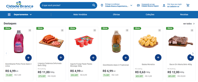 Que tal fazer as suas compras de supermercado sem sair de casa e sem ficar na fila do caixa? Essa praticidade é realidade no supermercado Cidade Branca de Corumbá, no site os clientes têm acesso a todas as promoções e produtos que também estão disponíveis na loja física, e em poucos cliques, é possível realizar suas compras sem sair de casa, com total segurança e comodidade.