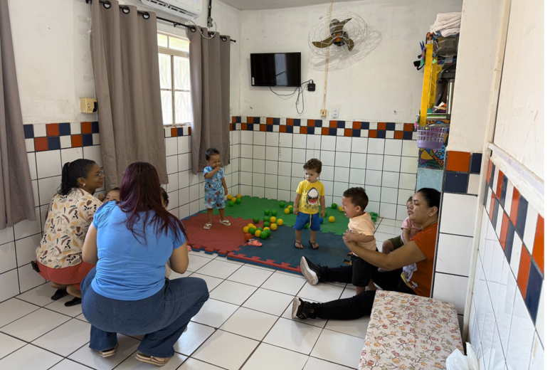 Professores com crianças de uma das creches da Rede Municipal de Ensino de Corumbá. (Foto: Divulgação)