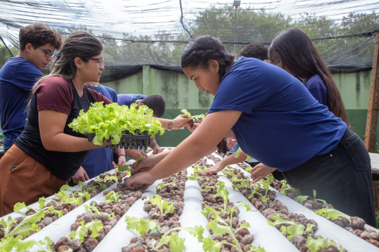 A horta também é um exemplo de interdisciplinaridade em ação. Alunos de Administração cuidam da gestão de custos e insumos, os de Publicidade produzem materiais de divulgação, e o Clube de Ciências monitora a qualidade da água no laboratório, aplicando conhecimentos de química e biologia em um contexto prático e integrado.