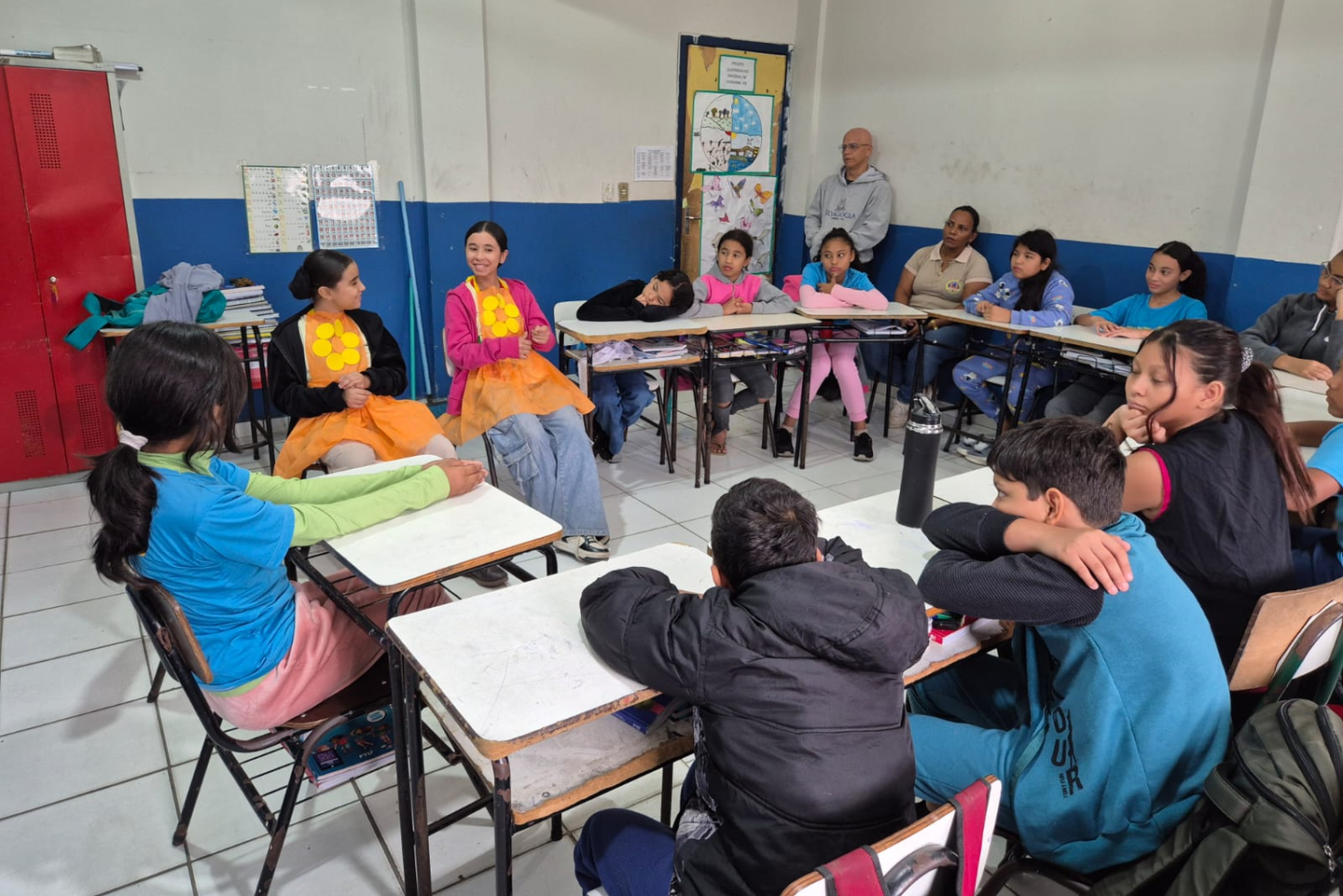 Participantes do Moinho conduzem rodas de conversa em escolas da rede pública com temas sobre proteção e direitos da infância. Foto: Assessoria do Moinho CulturalA estreia do projeto aconteceu na Escola Municipal CAIC Padre Ernesto Sassida, e ao longo desta semana, as ações seguem nas escolas EMEI Tilma Fernandes Veiga e Cyriaco Félix de Toledo.