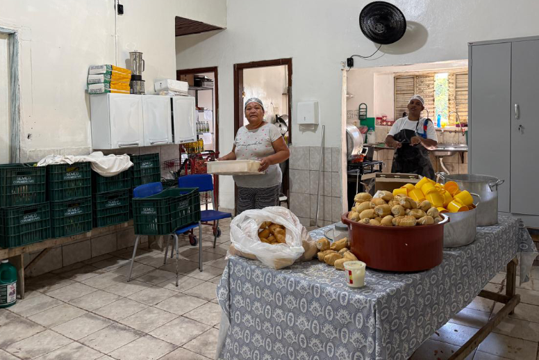 Merendeira trabalhando em cozinha de unidade escolar da Rede Municipal de Educação de Corumbá. (Foto: Divulgação/SEMED)