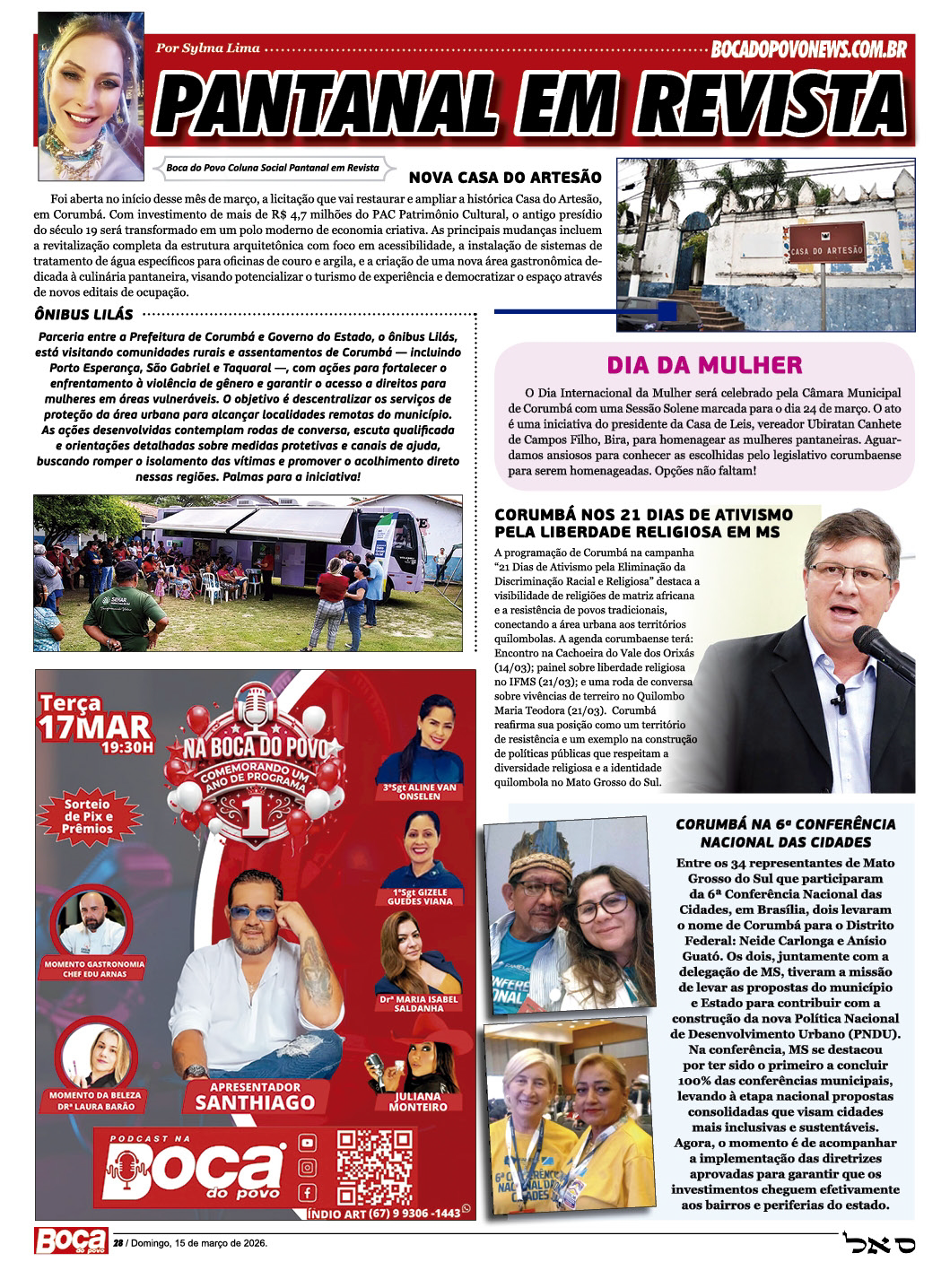 A coluna "Pantanal em Revista" é uma parceria entre o Capital do Pantanal — site de notícias com mais de 20 anos de trajetória, pioneiro no webjornalismo local de Corumbá e região — e o semanário Boca do Povo, de Campo Grande, administrado pelo renomado jornalista Benedito de Paula Filho. A revista possui tiragem de 25 mil exemplares por semana, que são distribuídos em vários municípios do Estado, incluindo Corumbá.