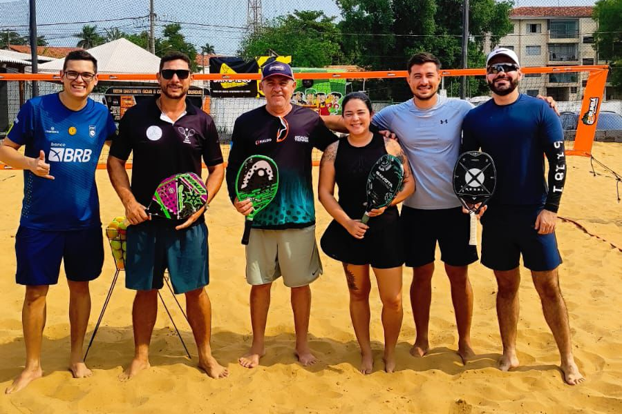 Professor Naldo, ao centro, é referência no esporte. Ele é responsável pelo fortalecimento do beach tennis no estado. Foto: DivulgaçãoReceba as notícias no seu Whatsapp. Clique aqui para seguir o Canal do Capital do Pantanal.
