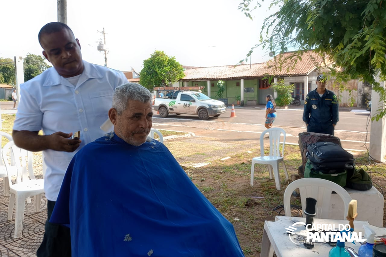 Corte de cabelo é um dos serviços oferecidos na ação cívico-social, realizada neste sábado, 07, pela Marinha do Brasil em Ladário. (Foto: Capital do Pantanal)
