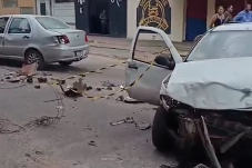 Colisão ocorreu em cruzamento do bairro Nossa Senhora de Fátima na manhã desta sexta. (Foto: Reprodução de vídeo/Corpo de Bombeiros)