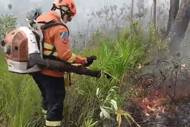 Um incêndio florestal mobilizou equipes do 3º Grupamento de Bombeiros Militar (3º GBM) na região do Carandazal, em área de divisa entre as fazendas Três Marias e Livramento, na sexta-feira (9).