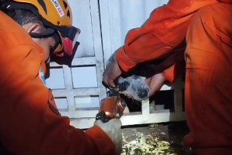 O caso ocorreu por volta das 23h de ontem (26), quando o 3º Grupamento de Bombeiros Militar foi acionado para atender a ocorrência na rua São Pedro, no bairro Maria Leite. Para retirar o animal com segurança, a guarnição utilizou o desencarcerador, ferramenta hidráulica que cortou parte da grade do portão. A operação durou cerca de 30 minutos, pois os bombeiros precisaram acalmar o cachorro durante todo o procedimento.