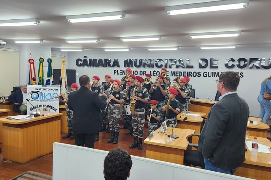 A Banda de Música da instituição encerrou a sessão com apresentação. Foto; Divulgação/Câmara de CorumbáA visita foi encerrada com uma apresentação da Banda de Música do Instituto Novo Olhar formada por patrulheiros e patrulheiras mirins, que propiciaram um final de sessão diferente na Câmara, com muita música, inclusive com o tradicional parabéns a um servidor da casa, Junior Silva, pela passagem de seu aniversário neste 9 de maio.