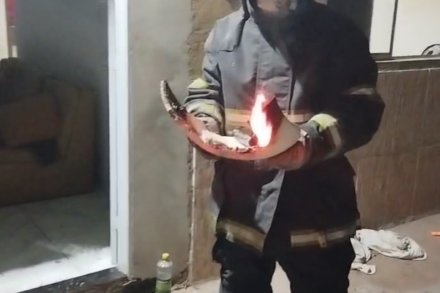 O fogo atingiu pia de acrílico no banheiro e só não se alastrou porque vizinhos perceberam a fumaça e acionaram os Bombeiros rapidamente. (Foto: Reprodução de vídeo/CBMMS)