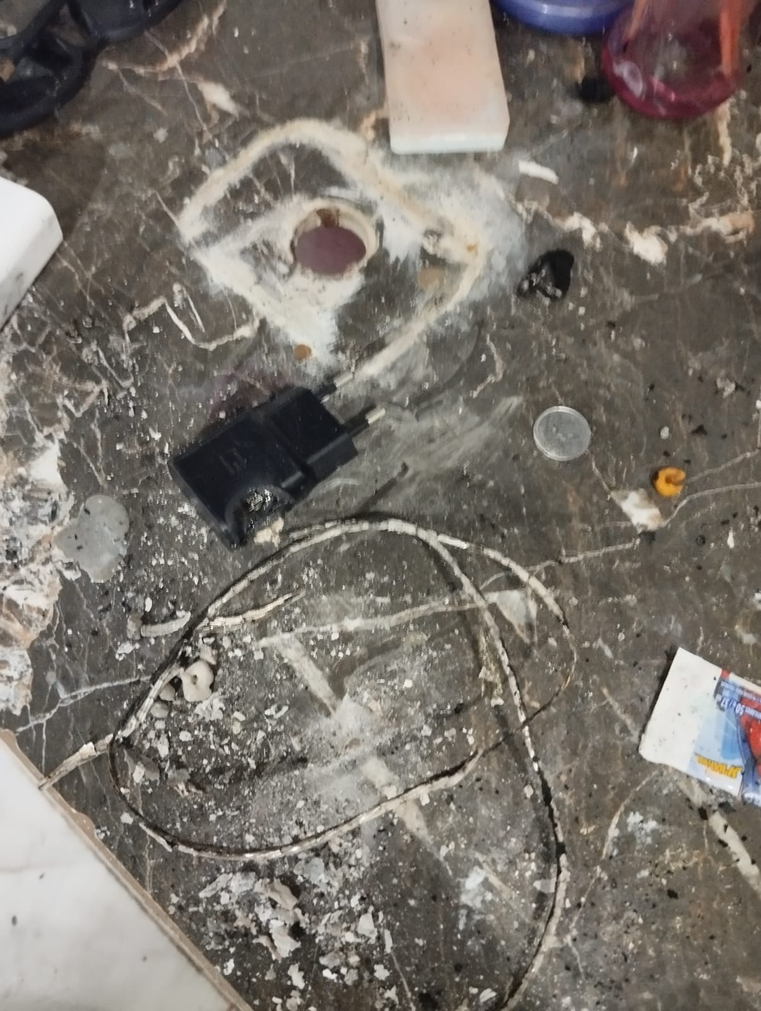 Bombeiros alertam para o risco de deixar carregadores na tomada. Foto: Divulgação/CBMMSDentro do imóvel, a equipe encontrou chamas concentradas no banheiro. De acordo com o relato técnico da guarnição, o incêndio foi provocado por um curto-circuito em um carregador de celular que estava conectado na tomada, sobre a pia de acrílico. Uma peça de roupa sobre a pia também ajudou a potencializar o fogo que terminou consumindo a pia de acrílico, instalada sobre uma bancada de mármore.