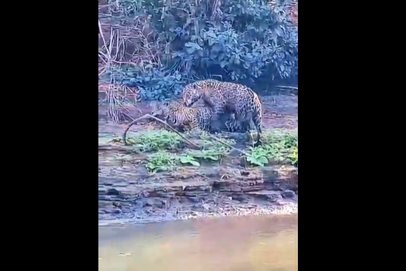 A PMA afirma que a presença de onças-pintadas, especialmente em comportamento de acasalamento, é um indicador positivo da saúde ecológica da região. (Foto; Reprodução de vídeo)