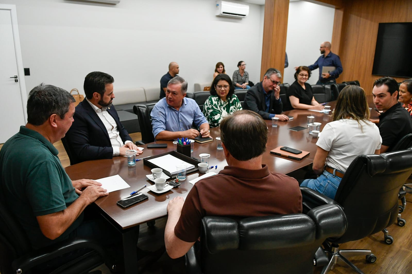Encontro reuniu o governador Eduardo Riedel, seus secretários de Estado e os chefes do Judiciário e do Ministério Público. (Foto: Bruno Rezende)