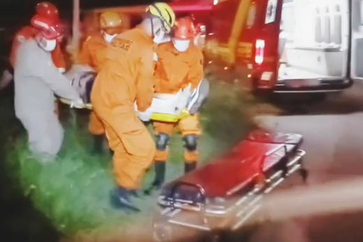 Durante o atendimento, os socorristas identificaram escoriações pelo corpo e suspeita de fratura no fêmur da perna direita. Não havia sangramento visível e os sinais vitais estavam estáveis.
