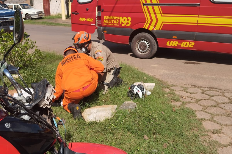 Motociclista de 19 anos foi socorrido no local e encaminhado para o Pronto Socorro Municipal. (Foto: Divulgação/CBMMS)