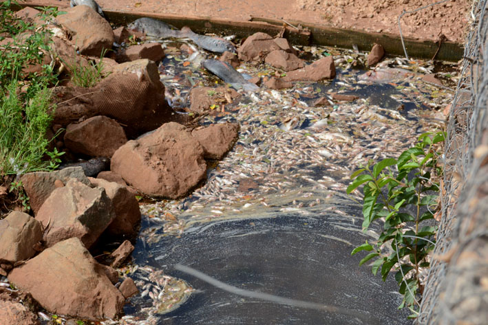 Enquanto a reportagem esteve no local, foi possível perceber uma grande quantidade de peixes mortos acumulada entre a Rua Bom Sucesso e a Rua do Aquário, no Bairro Marcos Roberto. “É uma judiação isso acontecer”, lamentou Egídio.
