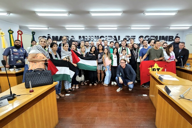 Representantes da comunidade palestina de Corumbá participaram da última sessão solene da Câmara Municipal realizada na terça-feira (12), e receberam total apoio dos vereadores corumbaenses que se manifestaram pelo fim da guerra na Faixa de Gaza.