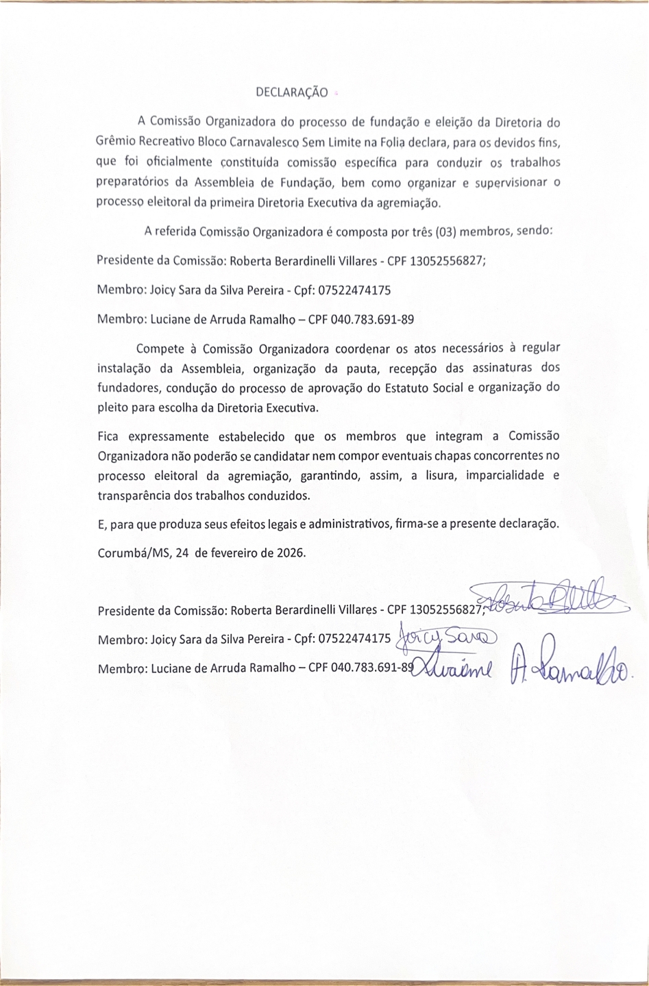 Comissão organiza fundação e eleição da primeira diretoria do Sem Limite na Folia