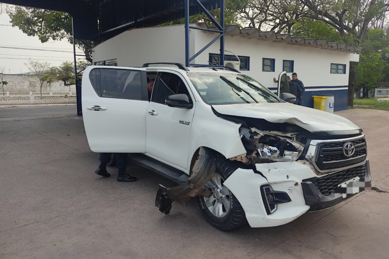 Hillux do autor das batidas sofreu várias avarias. (Divulgação/PM)
