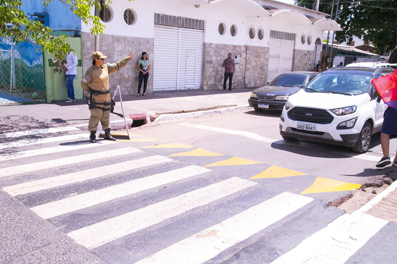Guarda organizando o trânsito em faixa de pedestre. (Foto: Clóvis Neto/PMC)