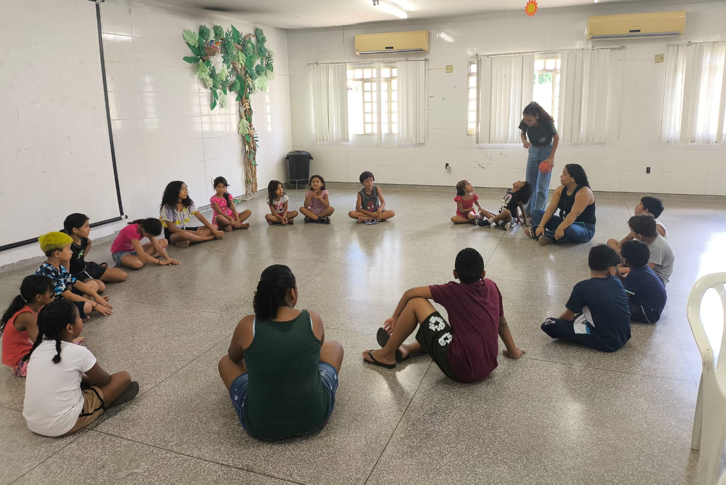 Programação lúdica garantiu lazer e interação entre crianças. Foto: Divulgação/PMC Ainda no período da manhã, o CRAS I promoveu a Colônia de Férias do SCFV, voltada a crianças de 4 a 6 anos e de 7 a 13 anos. A ação reuniu atividades lúdicas e recreativas, com foco no brincar coletivo, na interação social e no desenvolvimento social das crianças atendidas.