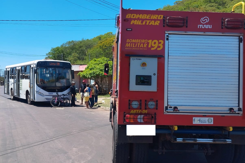 Para-brisa do ônibus ficou danificado após o atropelamento. Foto: Corpo de BombeirosSegundo relatos, a vítima, A. M.S.F, trafegava de bicicleta e atravessou a via de forma repentina. O motorista do ônibus, de 56 anos, tentou desviar e acionou os freios, mas não conseguiu evitar a colisão.
