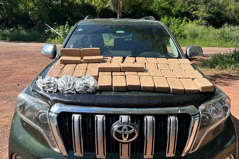 Neste domingo (3), veículo modelo Toyota Land Cruiser Prado, com placas bolivianas, foi flagrado com mais de 50 kg de cocaína na saída de Corumbá. No carro, estavam cinco passageiros, que de acordo com o GPS, haviam saído da Bolívia com destino a Campo Grande (MS). A apreensão foi realizada em operação de bloqueio da 18ª Brigada de Infantaria de Pantanal no Posto Fiscal Lampião Aceso, na rodovia BR 262.