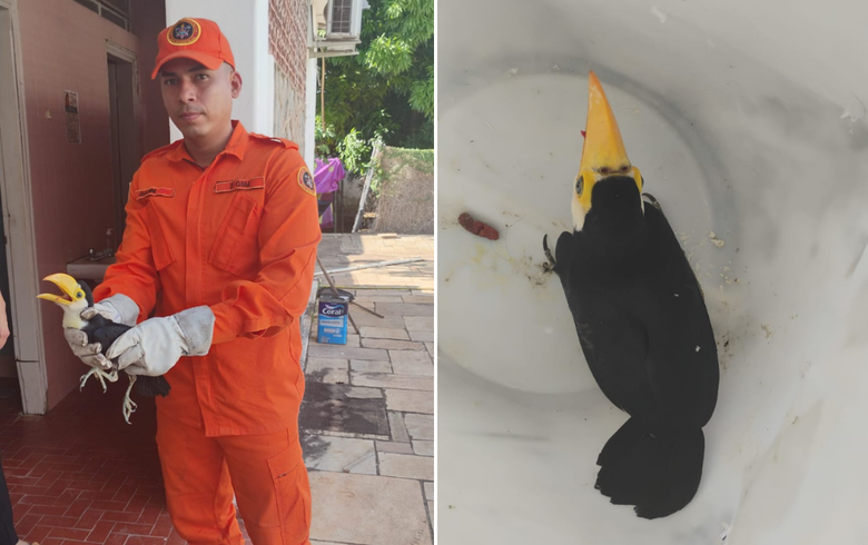 O filhote de tucano foi transportado para a Fundação de Meio Ambiente de Corumbá, onde passará por uma avaliação veterinária e será devolvido ao Meio Ambiente.