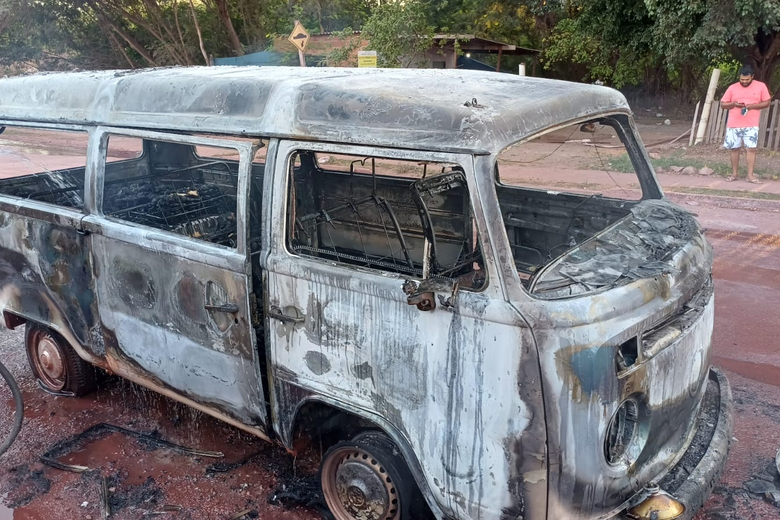 Nas primeiras horas da manhã desta sexta-feira (17), por volta das 05h30, viaturas de combate a incêndio do 3º Grupamento do Corpo de Bombeiros foram mobilizadas para o bairro Maria Leite, próximo a Escola Sesi, em Corumbá, onde um veículo do tipo Kombi era destruído pelo fogo.