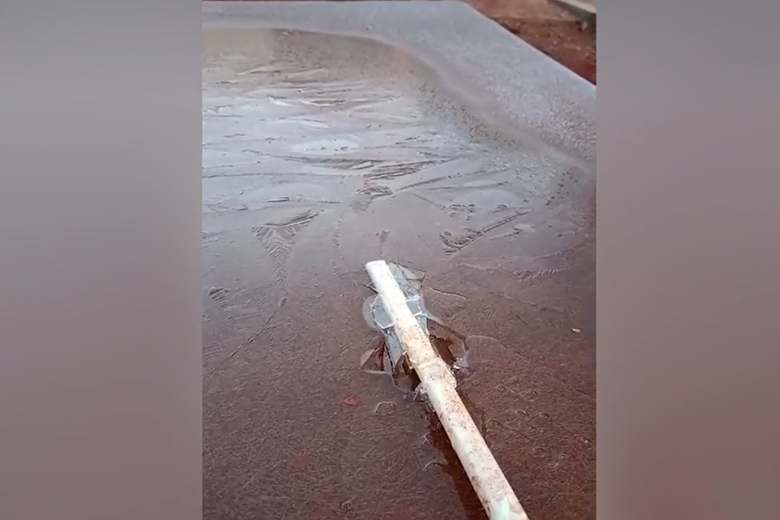 Morador de Dourados registrou o gelo formado sobre concreto no quintal. (Foto: Reprodução de vídeo)