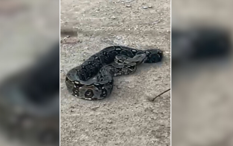 Serpente jiboia de 2 metros de comprimento. (Foto: Divulgação/CBMMS)