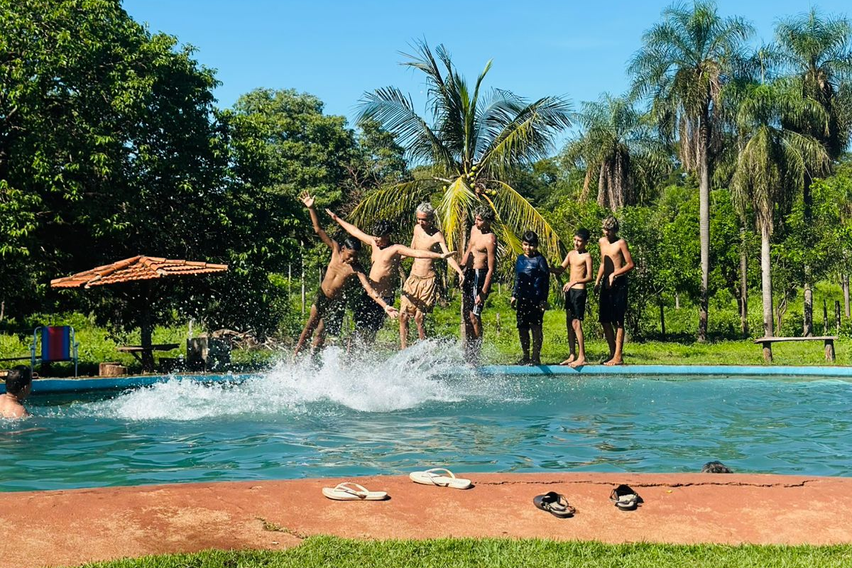 Jovens Cristão aproveitam a piscina durante retiro espiritual no Carnaval. Foto: Enviada ao Capital do PantanalUma Alternativa ao Carnaval
