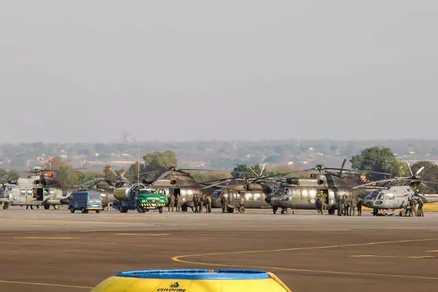 Aeronaves militares se posicionaram na pista desde as primeiras horas do dia. O acesso ao aeroporto está restrito. (Foto: Henrique Kawaminami )