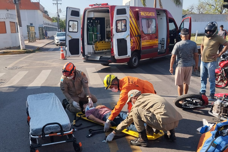 O Corpo de Bombeiros foi acionado para prestar socorro ao motociclista G.L.R., de 23 anos, que estava consciente, mas se queixava de dores na região do ombro e no lado direito do corpo. Ele foi atendido no local e levado para a UPA de Corumbá, onde recebeu atendimento médico.
