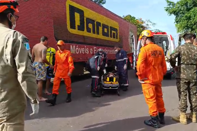 Por volta das 7h da manhã desta quinta-feira (11), militares do Corpo de Bombeiros Militar e socorristas do SAMU (Serviço de Atendimento Médico Emergencial), se deslocaram com urgência para a Rua Cuiabá, entre a Barão de Melgaço e Cáceres, para socorrer um jovem de 20 anos, motociclista, vítima de colisão com um caminhão.