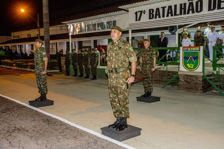 Na noite desta sexta-feira (18), cerimônia militar, realizada no pátio do 17° Batalhão de Fronteira, marcou a troca de comando da 18° Brigada de Infantaria de Fronteira Ricardo Franco, em Corumbá. O general João Denison Maia Correia entrega o posto para o também general André Luiz Ribeiro Allão, quem deve ficar a frente da organização militar por aproximadamente dois anos.
