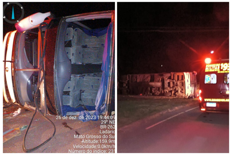 Ônibus de viagem que seguia de Corumbá para São Paulo tombou na rodovia BR 262, por volta das 19h40 desta terça-feira (26). O acidente ocorreu em trecho após o posto fiscal Lampião Aceso, em Corumbá.