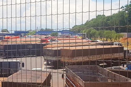 Com os veículos de carga pesada lotando as ruas e pátios da unidade, Ponta Porã começa a enfrentar desabastecimento de certos tipos de produtos, como cimento.