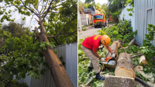 Queda de árvore bloqueia portão de residência no bairro Aeroporto