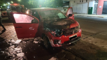 Carro pega fogo no centro de Corumbá