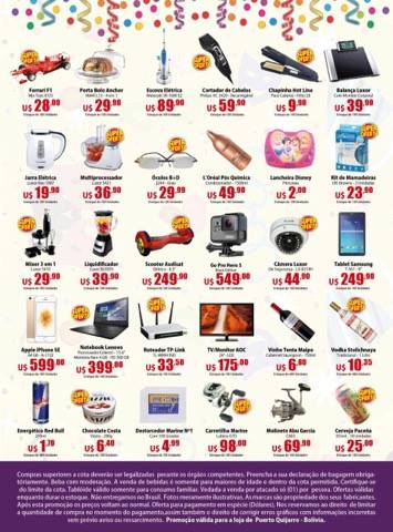 São centenas de itens com até 40% de desconto durante os dias de carnaval. A promoção do Shopping China já começou e a loja estará de portas abertas para atender os turistas na segunda-feira,27 de fevereiro, fechando somente no domingo e na terça-feira 28. Vale a pena conferir os preços imbatíveis nos setores de eletrônicos, perfumarias, confecções e beleza. Os folders com os produtos da promoção estão sendo distribuídos em toda cidade bem como na Fronteira. Fique por dentro desta promoção e economize. O dolar está cotado a R$ 3,20.