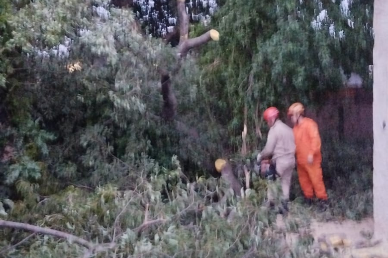 A recomendação das autoridades é que proprietários de terrenos realizem a poda de árvores que apresentem galhos projetados sobre casas vizinhas ou via pública, evitando acidentes e prejuízos maiores.