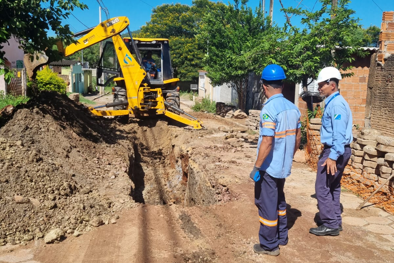 Técnicos da Sanesul trabalham desde as primeiras horas do dia no local. (Foto: Divulgação/Sanesul)