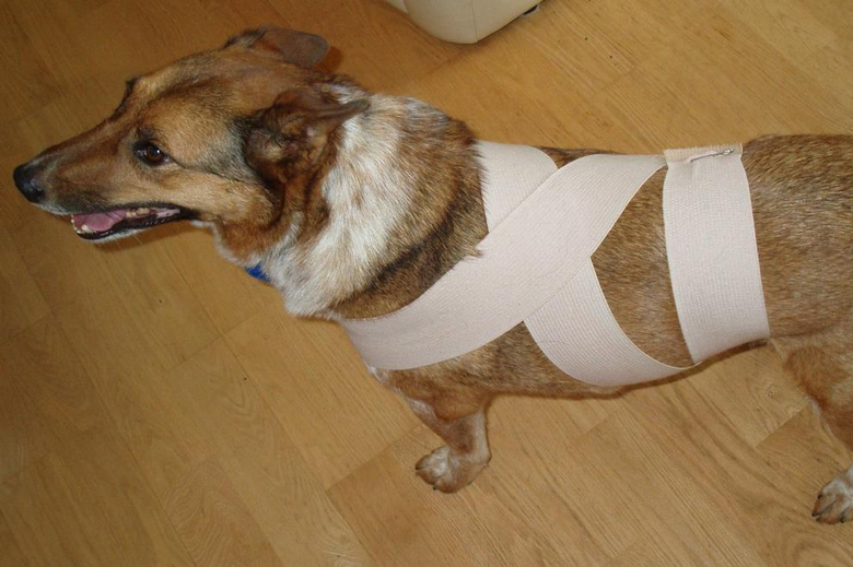 - Colocar um colete ou faixa protetora ao redor do corpo do animal. É simples: basta colocar a faixa na altura do peito do animal e cruzar as pontas depois do pescoço, na altura do dorso; depois é preciso fazer o mesmo abaixo, na altura do dorso; por fim, é necessário dar nó firme, perto da coluna. Deve-se garantir que o pano não esteja apertando ou machucando o pet. Confira no vídeo!