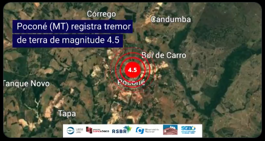 Um tremor de terra de magnitude 4,5 na escala Richter foi registrado na manhã de sábado, 1º de março, no município de Poconé (MT), localizado no norte do Pantanal. O abalo ocorreu às 6h14 (horário de Brasília) e foi detectado pelas estações da Rede Sismográfica Brasileira (RSBR), com análise do Centro de Sismologia da USP.